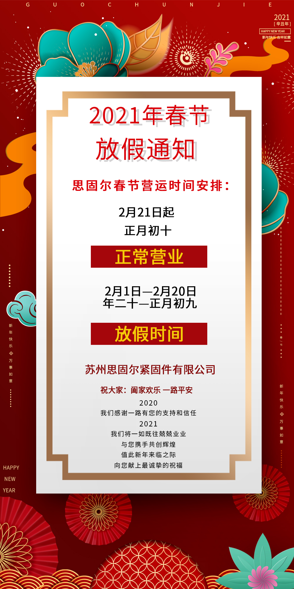 2021春節(jié)期間思固爾放假通知